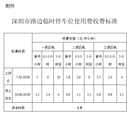 附件:深圳市路边临时停车位使用费收费标准
